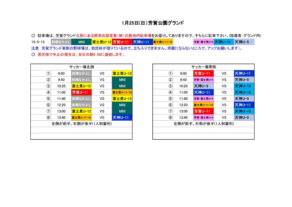 ※なかよしFC→6年生 U11→5年生 U10→4~3年生 U9→2~1年生